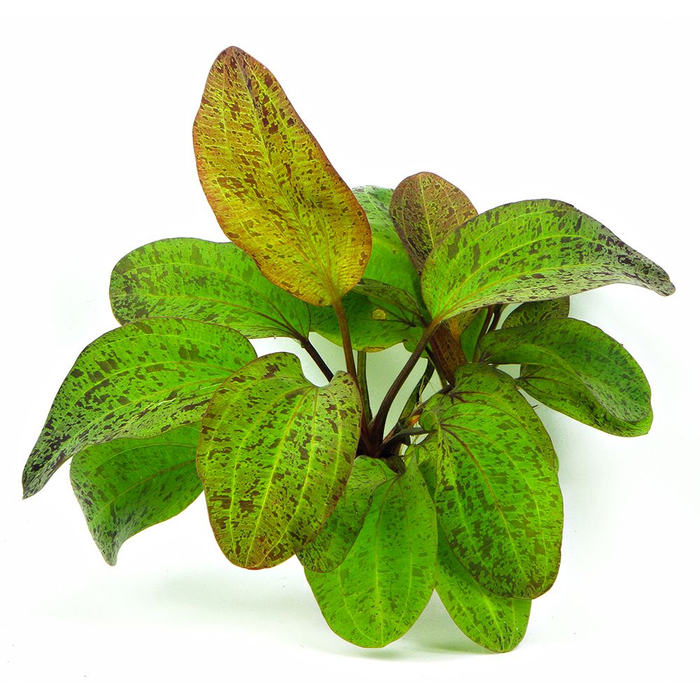Original price was: R85.00.R70.00Current price is: R70.00.Echinodorus “Ozelot” is a robust and decorative sword plant ideal for midground to background placement in medium to large aquariums. Its leaves are reddish-brown with distinct dark spots, especially visible on new growth. Unlike many other Echinodorus species, its leaf coloration remains stable even under moderate lighting. It thrives in nutrient-rich substrate, benefits from iron supplementation, and adapts well to a wide range of water conditions. This makes it a great choice for both beginner and experienced aquarists.